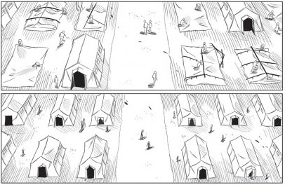 Bene, tutto questo, nella sceneggiatura di Luca Amerio e Luca Baino c’è e si fa leggere bene perché i due, nel pieno spirito del graphic journalism che Becco Giallo persegue ormai da 10 anni, hanno svolto un gran lavoro di ricerca sul territorio, e il tutto è premiato dal risultato finale, che mischia le stesse denunce a una fiction fatta di strati sovrapposti temporalmente in cui i veri protagonisti sono alcuni giovani aquilani catapultati in una realtà più grande di loro. Il tutto si vede anche nelle tavole di Nicolò Fila, che strizzano l’occhio ai manga e che sono in grado però di dare un’immagine altamente reale di L’Aquila, com’era e com’è oggi. Il libro è poi impreziosito giornalisticamente da una cronistoria dei fatti e degli accadimenti successivi al 6 aprile curata da NeswTown, da un’intervista ad Antonio Ciccozzi, professore di Antropologia Culturale dell’Università di L’Aquila e da una postfazione di Mattia Fonzi dal titolo emblematico, Il resto è appena iniziato, che annuncia, anche se forse non ce ne sarebbe bisogno, come questa storia sia ancora lontana dal vedere scritta la parola fine.
